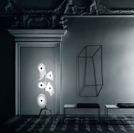 Le lampadaire Orbital de chez Foscarini est haut en couleur, fort en personnalité, ultra graphique, ce lampadaire avec ses diffuseurs créera une ambiance plastique et artistique dans votre salon.