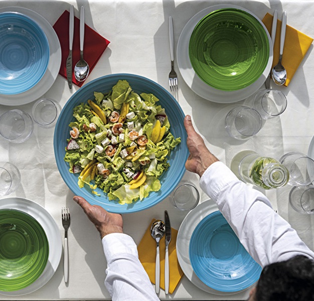 La corbeille centre de table/saladier "Twist" de chez Guzzini est un récipient conçu en plastique recyclé alimentaire SAN.