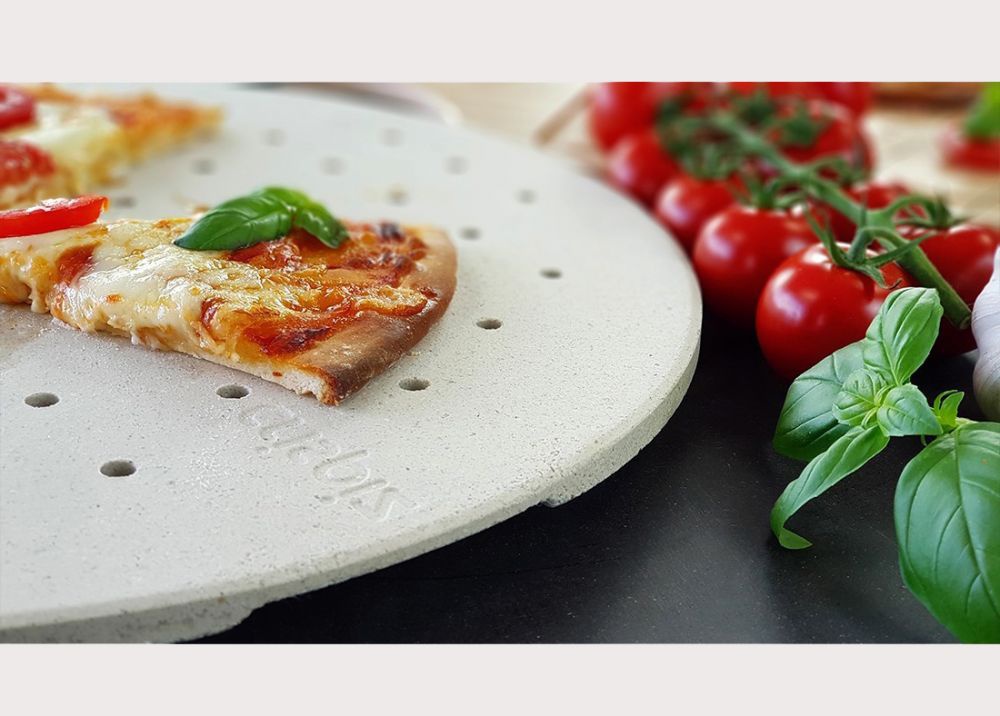 Crispiz est la seule pierre à pizza réalisée dans un matériau réfractaire percé de nombreux trous. La pierre réfractaire emmagasine la chaleur pour une cuisson similaire à celle d’un four traditionnel en briques. En complément, les trous permettent à l’air chaud de venir cuire directement la pâte sous la pizza et d’éliminer l’humidité : fini la sensation désagréable de « pâte humide pas assez cuite » au centre de la pizza !