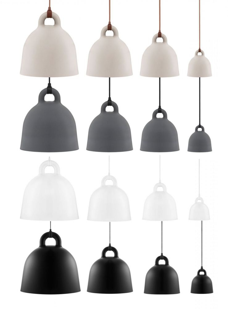 Les suspensions Bell se déclinent dans plusieurs coloris, en version petit modèle (Ø 35 cm x H 37 cm) moyen modèle (Ø 42 cm x H 44 cm) ou grand modèle (Ø 55 cm x H 57 cm).