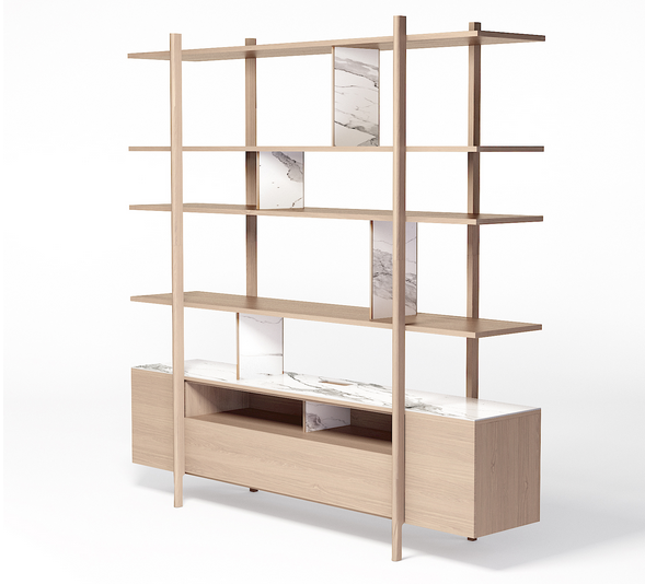 Pied en bois massif. Caisson, tablettes, portes et abbatants plaqués façon massif 9/10ème sur mdf de 22 mm avec alèses massives.