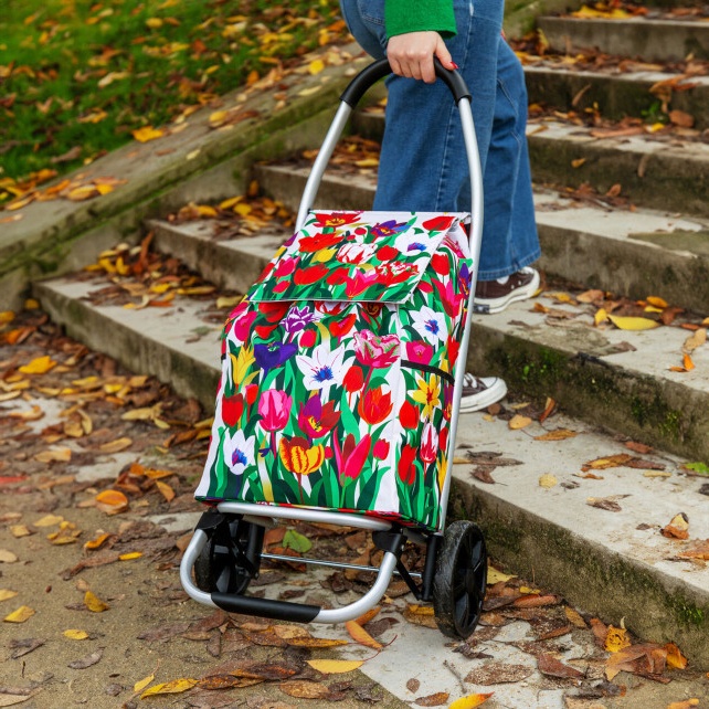 Fini les sacs trop lourds ou les allers-retours en voiture pour quelques courses : le chariot de courses Trolly de Pylones est l’allié du quotidien. Sa structure en aluminium le rend à la fois ultra léger et incroyablement solide, parfait pour transporter vos courses sans effort. Le sac en tissu arbore un motif floral joyeux qui égaye chaque sortie, avec des fleurs et tulipes multicolores qui mettent de la bonne humeur dans vos trajets. Il se plie facilement pour un rangement gain de place. Une solution stylée et durable pour simplifier vos déplacements au marché ou au supermarché !