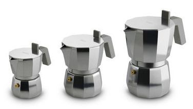 La cafetière italienne  "Moka" de chez Alessi est conçue en fonte d'aluminium et la poignée en polyamide. Tous feux sauf induction.