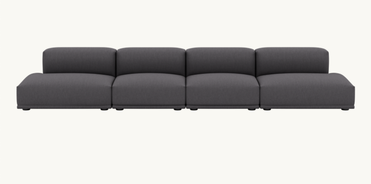 Le canapé modulaire Connect apporte une perspective moderne à la typologie, permettant à son utilisateur de personnaliser le canapé pour ses besoins spatiaux et esthétiques exactsCanapé 4 places, Configuration 1