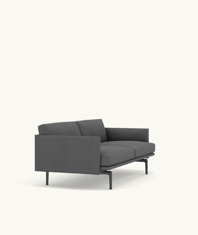 Le canapé Outline ajoute de nouvelles perspectives aux canapés de design scandinave classiques des années 1960, épousant les idéaux de simplicité et de fonction en un seul. Le design tirant son nom de son contour solide d'un canapé, la série Outline est propre et élégante à l'extérieur avec un siège profond et un rembourrage doux à l'intérieur. La série Outline a une expression à la fois élégante mais intemporelle, élevée par ses lignes faisant référence à des formes architecturales le long de ses accoudoirs incurvés, donnant au design une apparence distincte à travers différentes tailles et variantes. La série Outline comprend également des versions Studio du canapé et de la chaise, étant des versions compactes avec des proportions allégées pour les petits espaces de la maison, les chambres d'hôtel, les environnements de travail et plus encore. Le canapé et la chaise Outline Studio ont une profondeur plus petite de 76 cm / 29,9".