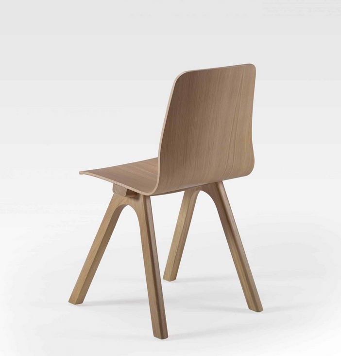 Matière : Structure en bois massif et coque en multipli moulée plaquée chêne sur la face arrière.