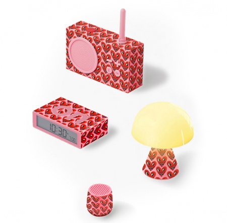 Le coffret Heart de Keith Haring chez Lexon X contient une enceinte Mino+, une lampe baladeuse Mina M, un réveil Flip+, et une radio Tykho3.