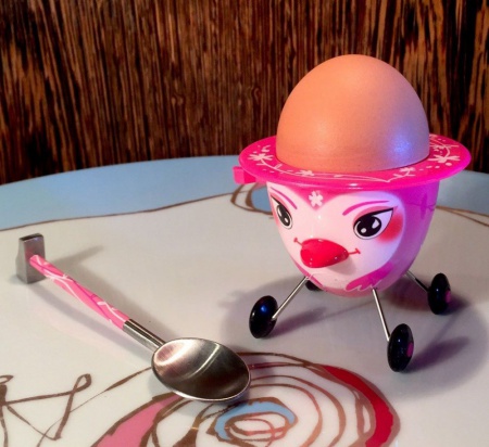 Le coquetier Cocotte "Coeur" de chez Pylônes sur roues est conçu en acier inoxydable, plastique ABS et en plastique HIPS.