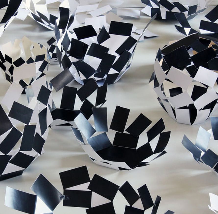 Il en est née une collection d'objets aux géométries arythmiques, composés de petits éclats de dimensions différentes, unis entre eux par des points en équilibre instable.