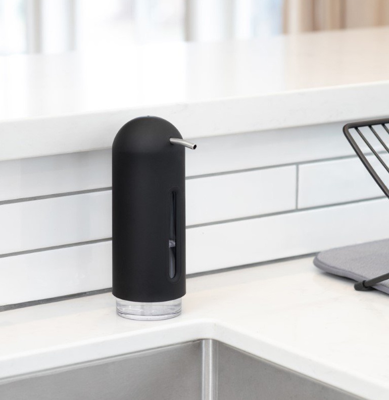 Le distributeur de savon Penguin de chez Umbra est conçu en acrylique avec un bec en inox.