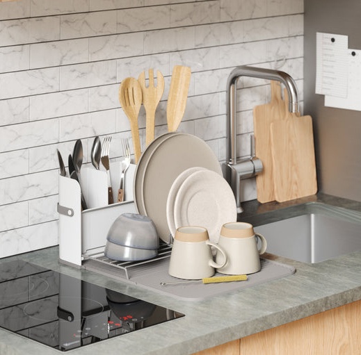 Tapis De Vaisselle : le tapis caoutchouté de Sling garde votre plan de travail au sec et passe au lave-vaisselle pour un nettoyage facile.