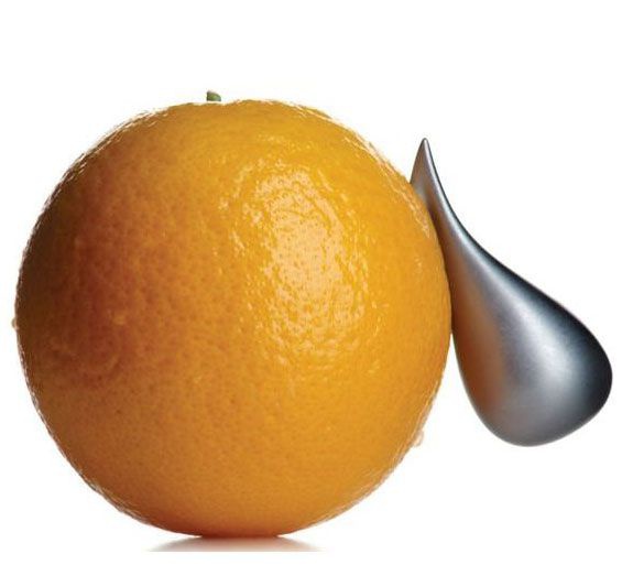 Après le succès du dessous de plat Tripod, Gabriele Chiave continue sa recherche sur les instruments petits et malins avec "Apostrophe". Cet objet à la forme inhabituelle ne révèle pas à première vue sa fonction. En réalité c'est un éplucheur d'orange au fonctionnement simple et intuitif. La petite lame en crochet taille l'écorce sans entamer la pulpe. Le geste est facilité par une prise en main ergonomique, qui s'adapte bien aux doigts de la main. Pour présenter des oranges de façon originale, vous pouvez faire des entailles décoratives sur toute la surface du fruit. Vous pouvez également utiliser Apostrophe pour éplucher d'autres agrumes (pamplemousse, citron...).