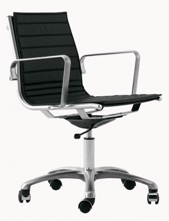 Fauteuil de direction dossier moyen, avec accoudoirs en aluminium, plaque gaz, piétement en aluminium, avec roulettes.