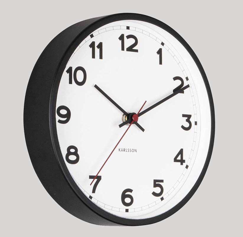 L'horloge New Classic de chez Karlsson est conçue en métal peint en noir.