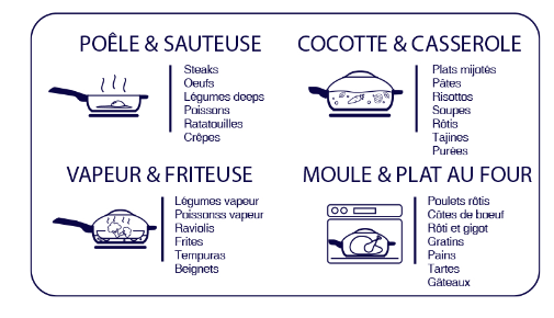 Oeufs au plat, poulets rôtis, légumes vapeur, blanquette de veau, frites, gratin, gâteaux, pizza... Tout est possible !