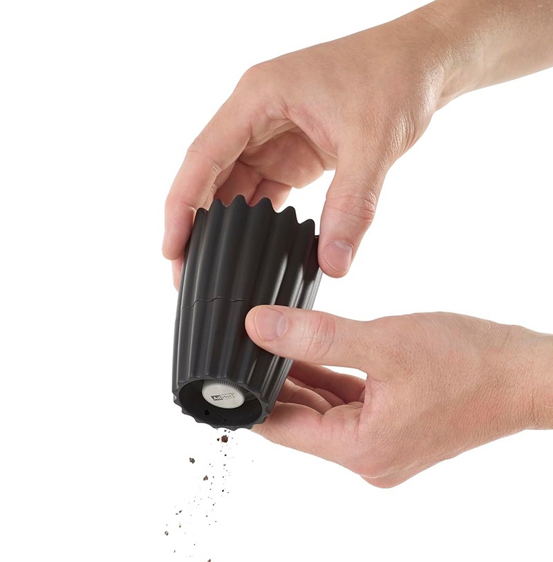 Le réglage de la mouture par serrage vous permet d’ajuster facilement la finesse selon vos besoins : fine pour les sauces, plus grossière pour relever viandes, légumes ou salades.