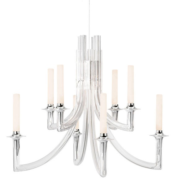 Le lustre Khan de chez Kartell est fabriqué en Polycarbonate 2.0 fabriqué à partir de matière première renouvelable. Il possède 8 branches.