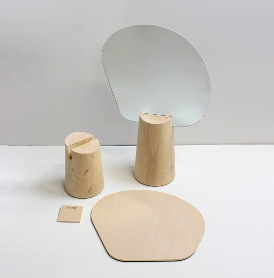 Le miroir Ping-Pong propose un jeu de reflets avec leur miroir à poser sur un socle en bois d'aulne massif. Ces deux parties créent un contraste harmonieux. Disponible en deux tailles.