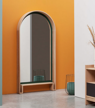 Comme une porte ouverte, le miroir BIPÈDE agrandit l'espace. Ses dimensions lui assurent une belle présence dans un intérieur. Son cadre en demi-cintre rappelle les arcs des portes voûtées. Sobre et élégant, BIPÈDE permet de contempler son reflet en pied. Conçu et fabriqué en Anjou.