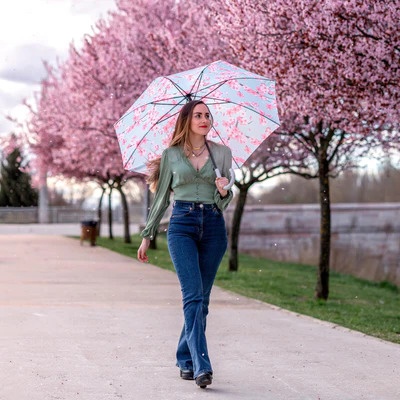 Le parapluie pliant Sakura fleurs cerisier de chez Fisura, pratique au motifs de cerisiers résiste à toutes les averses.