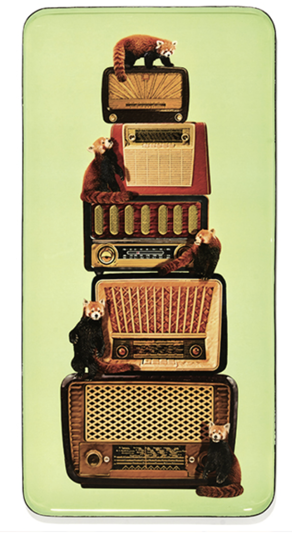 Le plateau JAZZY incarne l’ADN créatif de Gangzai : un mélange d’influences pop, graphiques et inattendues. Sur un fond vert clair frais et lumineux, des transistors empilés composent une architecture visuelle rythmée, accompagnés de pandas qui apportent une note à la fois douce et ironique.