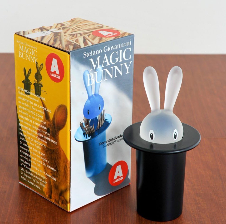 Le porte cure-dents Magic Bunny de chez Alessi est conçu en résine thermoplastique en forme de lapin.