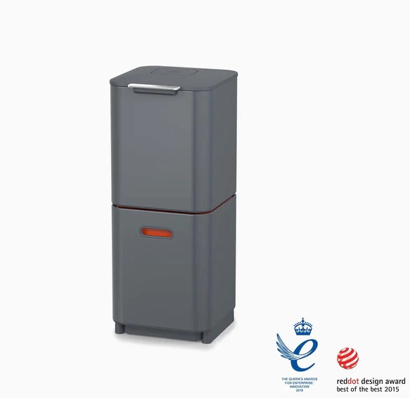 Totem Compacte (40L) en gris dispose de différents compartiments pour vos déchets alimentaires, vos déchets ménagers et votre recyclage afin que vous puissiez facilement les séparer grâce à une seule unité compacte.Le design primé associe trois poubelles en une