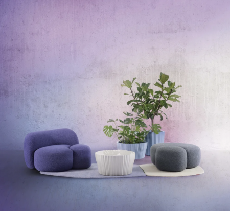 La nouvelle collection d’assises rembourrées AALAND, imaginée par Patricia Urquiola puise son inspiration dans les images des archipels, où les îles rapprochées créent un sentiment de cohésion dans un espace fluide. Ce concept original imprègne chaque élément de la collection, les formes douces et organiques des sièges s’étendent et fusionnent pour donner vie à de petites îles, qui créent de nouveaux espaces de confort et de rencontre. AALAND défie les règles classiques du rembourrage en misant sur des formes libres, des volumes inattendus et multifonctions, qui vont bien au-delà du style traditionnel des assises. La collection propose de nombreux petits sièges qui, ensemble, composent un paysage parsemé d’occasions de socialisation. Canapés, fauteuils, poufs grands et petits sont présentés comme des îlots qui, grâce à un langage organique, se connectent et se complètent les uns les autres. Aucune assise rembourrée n’est plus un élément isolé, toutes contribuent désormais à un ensemble cohérent. Les pièces rembourrées de la collection, conçues individuellement dans des dimensions plus petites, sont facilement déplaçables et organisables selon les besoins. Parés d’un motif unique, trois tapis AALAND de différentes dimensions viennent compléter ce paysage. Ce motif représente deux formes organiques arrondies, chacune avec un fond différent, placées l’une près de l’autre et reliées par un signe graphique, tel une suture. Cela crée un effet visuel percutant, qui vient sublimer l’esthétique et la vivacité de l’espace environnant.