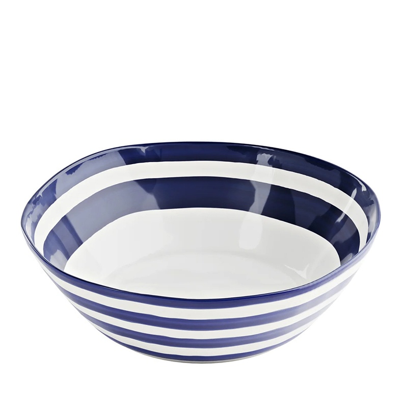 Évoquez l'air salin, les vagues et les apéritifs en bord de mer grâce au saladier Riviera de Guzzini. Fabriqué en mélamine, il allie durabilité, légèreté et esthétisme. Ses rayures bleu marine, résolument méditerranéennes, insufflent un vent de fraîcheur à votre table. Idéal pour des salades généreuses, des fruits ou des plats à partager, ce saladier devient un objet déco autant qu’un accessoire pratique. Offrez à vos convives une expérience visuelle et gustative estivale à chaque repas.