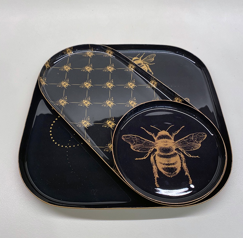 Ajoutez une touche de flair éclectique à votre intérieur avec le set de plateaux Abeilles de Temerity Jones. Les motifs d'abeilles élégants et stylisés apportent une dimension artistique unique à ces plateaux, les transformant en pièces maîtresses de votre décoration. Que vous les utilisiez comme plateaux de service, comme éléments décoratifs ou comme pièces de conversation, ces plateaux sont sûrs d'attirer l'attention et de susciter l'admiration de vos invités. Exprimez votre style distinctif avec ces magnifiques pièces.
