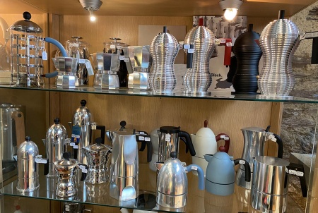 Vous y retrouverez des marques comme Alessi, Buggati, Guzzini, Mépra, Eva Solo,... Des créations d'Aldo Rosi, de Michele De Lucchi, de Mario Trimarchi, de David Chipperfield, d'Alessandro Mendini, de Boucquillon & Maaoui, de Richard Sapper...
