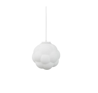 La collection de lampes est fabriquée à partir de verre opale gravé, un matériau translucide qui assure une lumière agréable et uniforme et émet une lueur chaleureuse. L'abat-jour en verre est composé de bulles de différentes tailles assemblées dans une composition organique asymétrique mais savamment équilibrée. Chaque bulle est unique en taille et en forme, présentant un design qui semble différent de chaque point de vue.