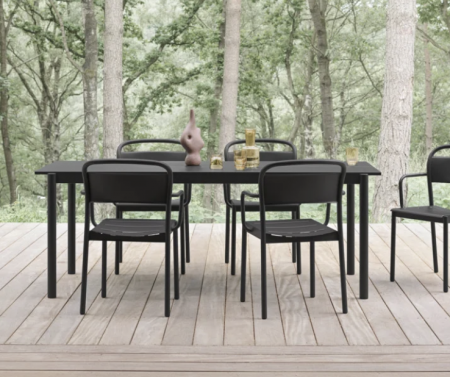 La table en acier linéaire apporte de nouvelles perspectives au mobilier d'extérieur moderne grâce à ses lignes droites le long des bords pliés, ses pieds qui se croisent en demi-circulaire et son petit espacement pour un retrait facile de l'eau. Gardée visuellement propre pour une esthétique durable, la table en acier linéaire trouve son caractère distinct grâce à des détails subtils et une expression simple, ce qui lui permet de compléter n'importe quel cadre extérieur. Associez la table au banc linéaire en acier, conçu dans des proportions qui lui permettent de glisser facilement sous la table.