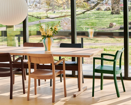 Inspirés par l'esthétique épurée des meubles Shaker classiques, les designers français Ronan et Erwan Bouroullec ont conçu la table Passerelle - une interprétation mise à jour partageant la même simplicité et la même qualité dans un contexte plus contemporain. Avec une construction bien équilibrée et emballée à plat, le plateau de table présente des bords en bois massif et une surface supérieure en placage, stratifié ou linoléum, avec le noyau en Lisocore® - un matériau avancé de haute qualité qui offre une grande résistance tout en étant extrêmement léger et facile à déplacer. La sous-construction est tout aussi robuste et fonctionnelle, avec un cadre en bois massif et une barre transversale en aluminium et en acier qui renforce et stabilise la table. La variété d'options de matériaux, de couleurs et de tailles de la table Passerelle amplifie sa qualité multifonctionnelle, la rendant également appropriée pour une utilisation comme cuisine, table à manger ou table de réunion dans les espaces privés et publics.