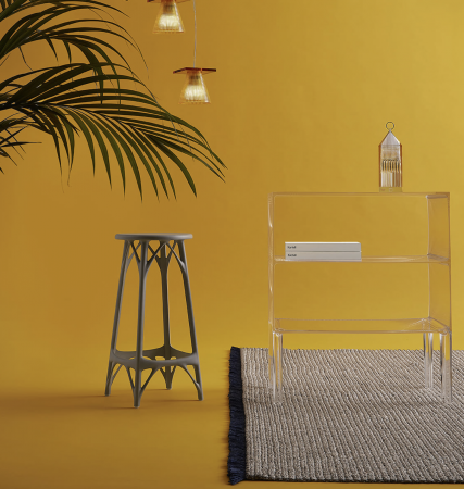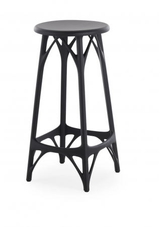 Un tabouret fabriqué avec des matières recyclées qui met l’accent sur la durabilité du projet. L’assise est durable tant du point de vue de la matière que du processus de production, spécifiquement conçu pour une optimisation totale. En effet, trois modèles peuvent être produits à partir d’un même moule, s’inscrivant ainsi dans une démarche verte qui va au coeur de la production industrielle. La valeur ajoutée d’A.I. est d’être la première famille de produits conçue par une intelligence artificielle ayant répondu au savoir-faire de l’entreprise (Kartell) et aux données entrées par le designer (Philippe Starck). Concrètement, la pensée créative, le savoir-faire de l’entreprise et l’intelligence artificielle ont fusionné pour concevoir une produit totalement élaboré par un algorithme qui respecte les paramètres du designer et de l’entreprise, à savoir créer une chaise confortable réunissant toutes les conditions structurelles de résistance et de solidité. Naturellement, sans faire l’impasse sur l’une des valeurs principales de Kartell : créer un produit industriel, d’une grande qualité esthétique, obtenu par moulage à injection.